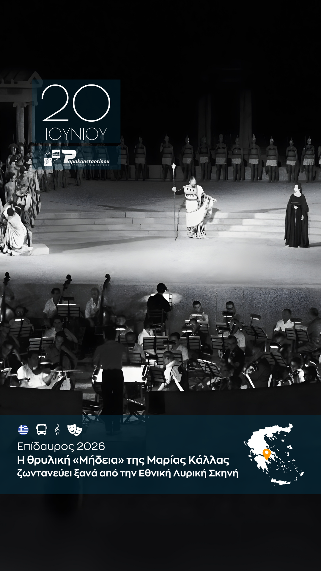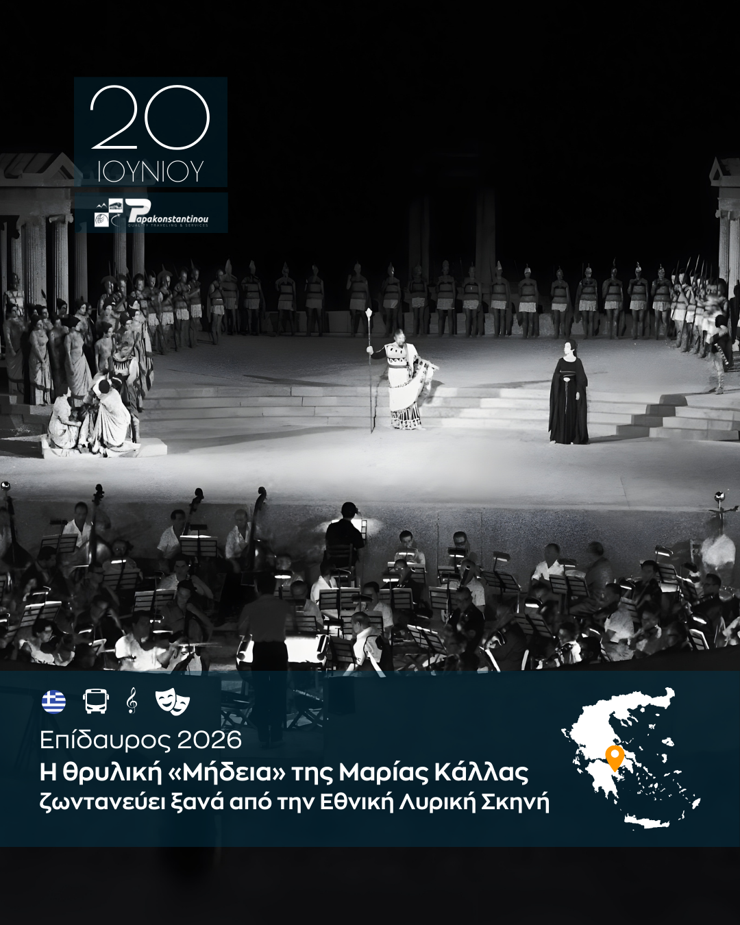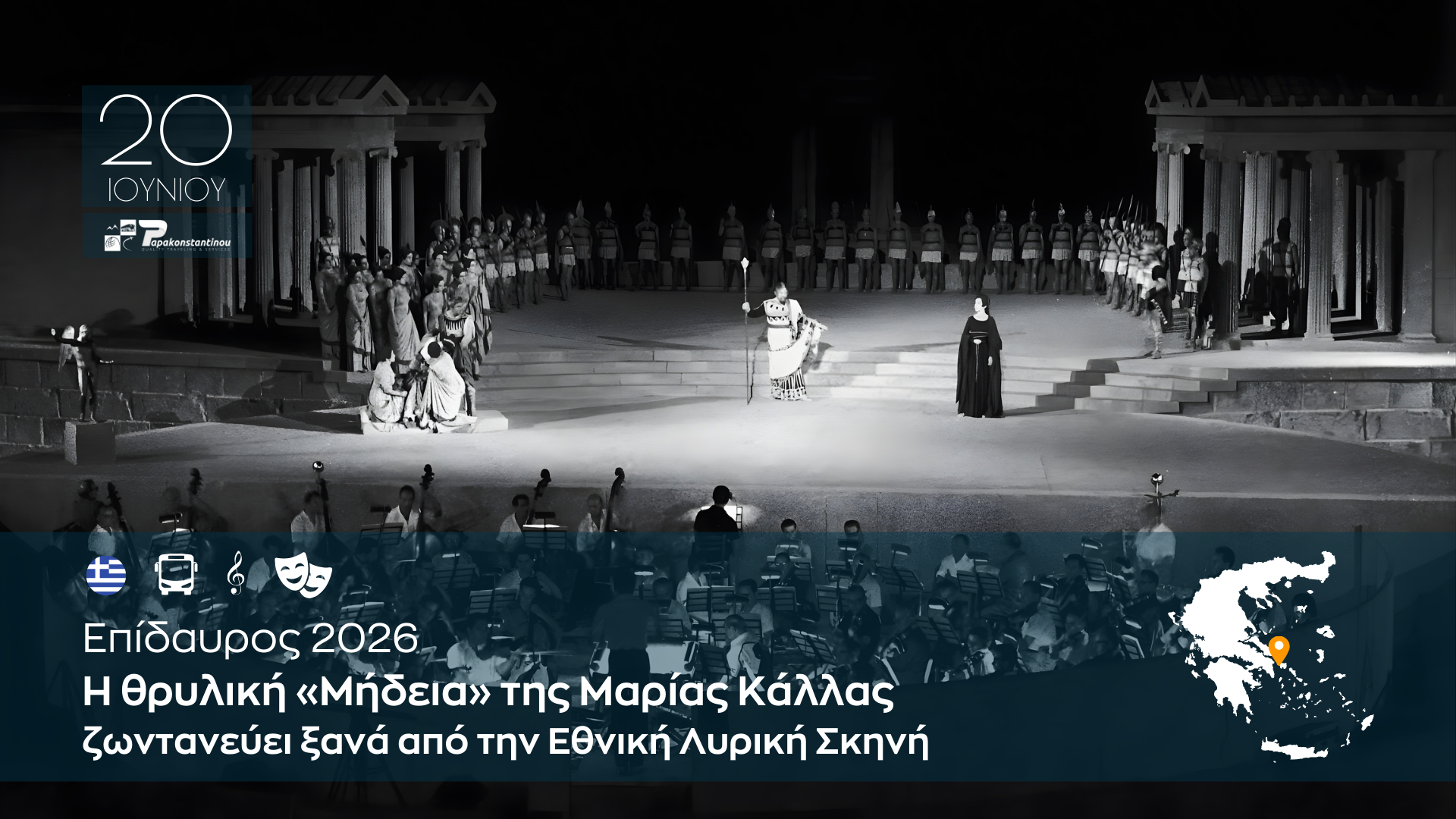 Εξήντα πέντε χρόνια μετά την ιστορική εμφάνιση της Μαρίας Κάλλας στο αργολικό θέατρο, η Εθνική Λυρική Σκηνή (ΕΛΣ) επιστρέφει στο Αρχαίο Θέατρο της Επιδαύρου. Στις 20 Ιουνίου 2026, το κοινό θα έχει τη σπάνια ευκαιρία να παρακολουθήσει την όπερα του Λουίτζι Κερουμπίνι μέσα από μια εντυπωσιακή ανασύνθεση της εμβληματικής παράστασης του 1961.