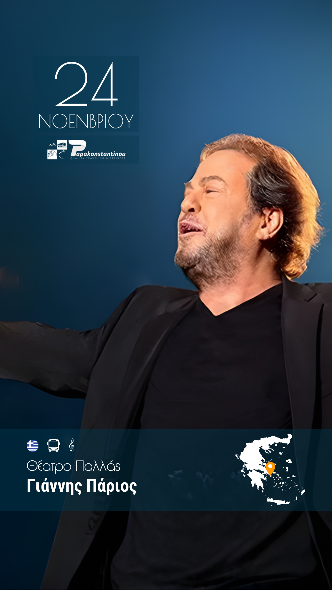 Ο Γιάννης Πάριος επιστρέφει στο Θέατρο Παλλάς, την Δευτέρα 24 Νοεμβρίου, για δύο ακόμη συναντήσεις με το αγαπημένο του κοινό.