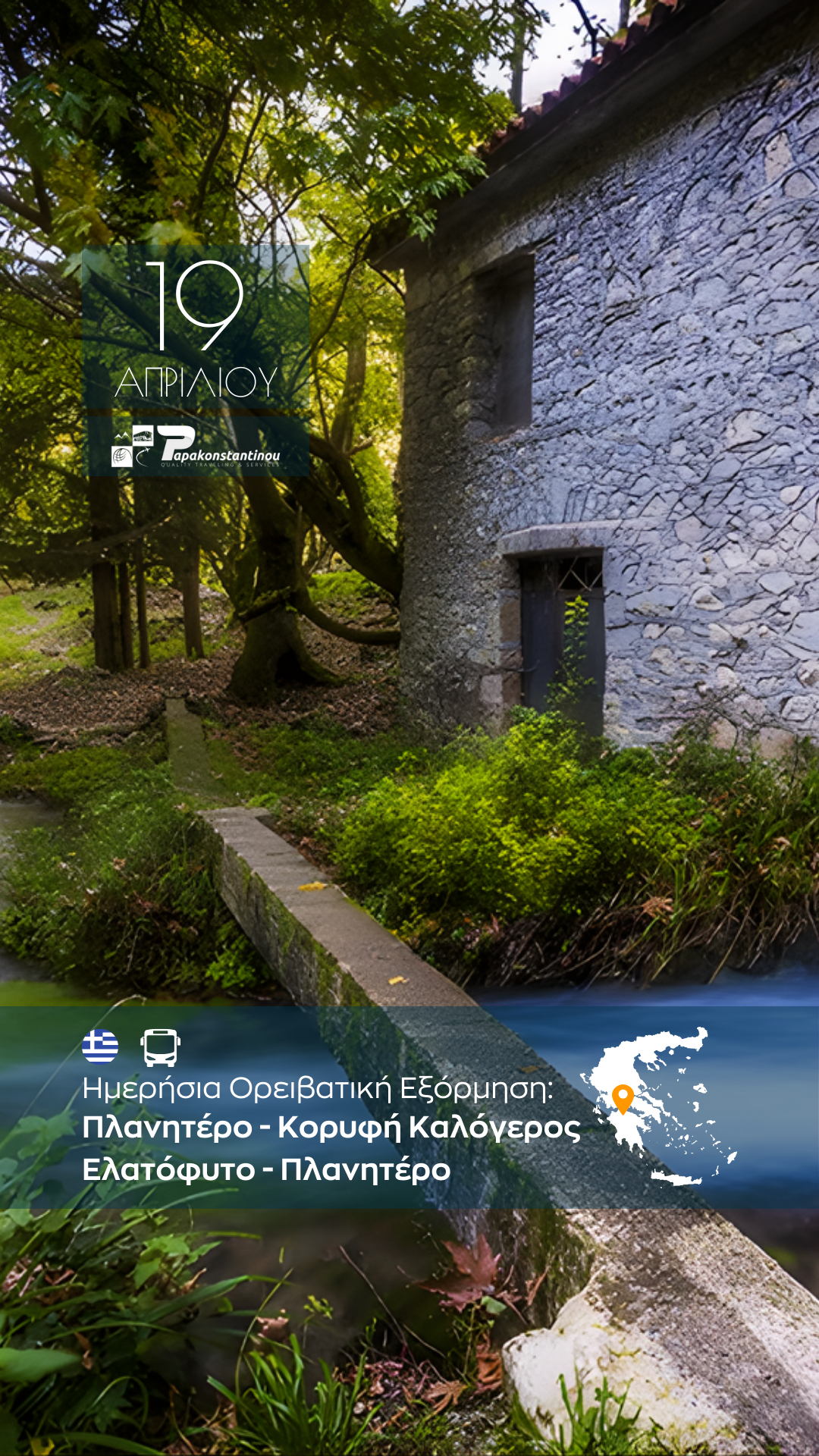 Με τη συμμετοχή σας δηλώνετε ότι αναλαμβάνετε πλήρως την προσωπική ευθύνη για την παρουσία και τις ενέργειές σας κατά τη διάρκεια της δραστηριότητας και αποδέχεστε ότι οι Hike Experience by Papakonstanitnou Travel δεν φέρουν καμία ευθύνη για τυχόν ατύχημα, τραυματισμό ή σωματική βλάβη που ενδέχεται να προκύψει.