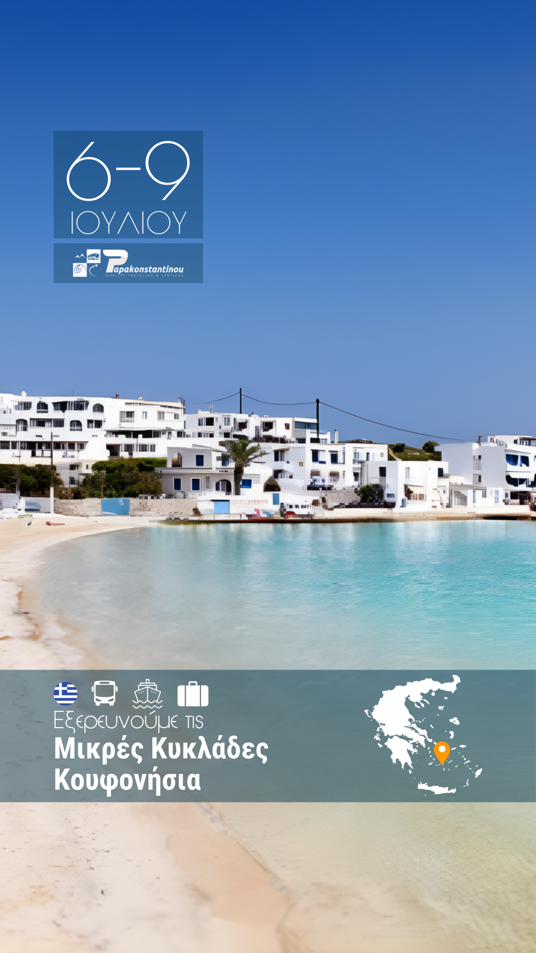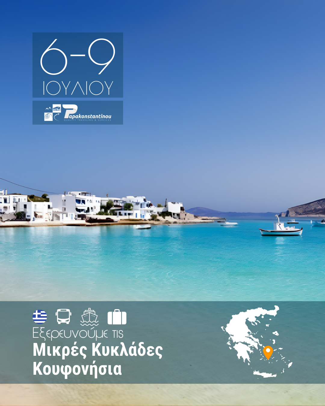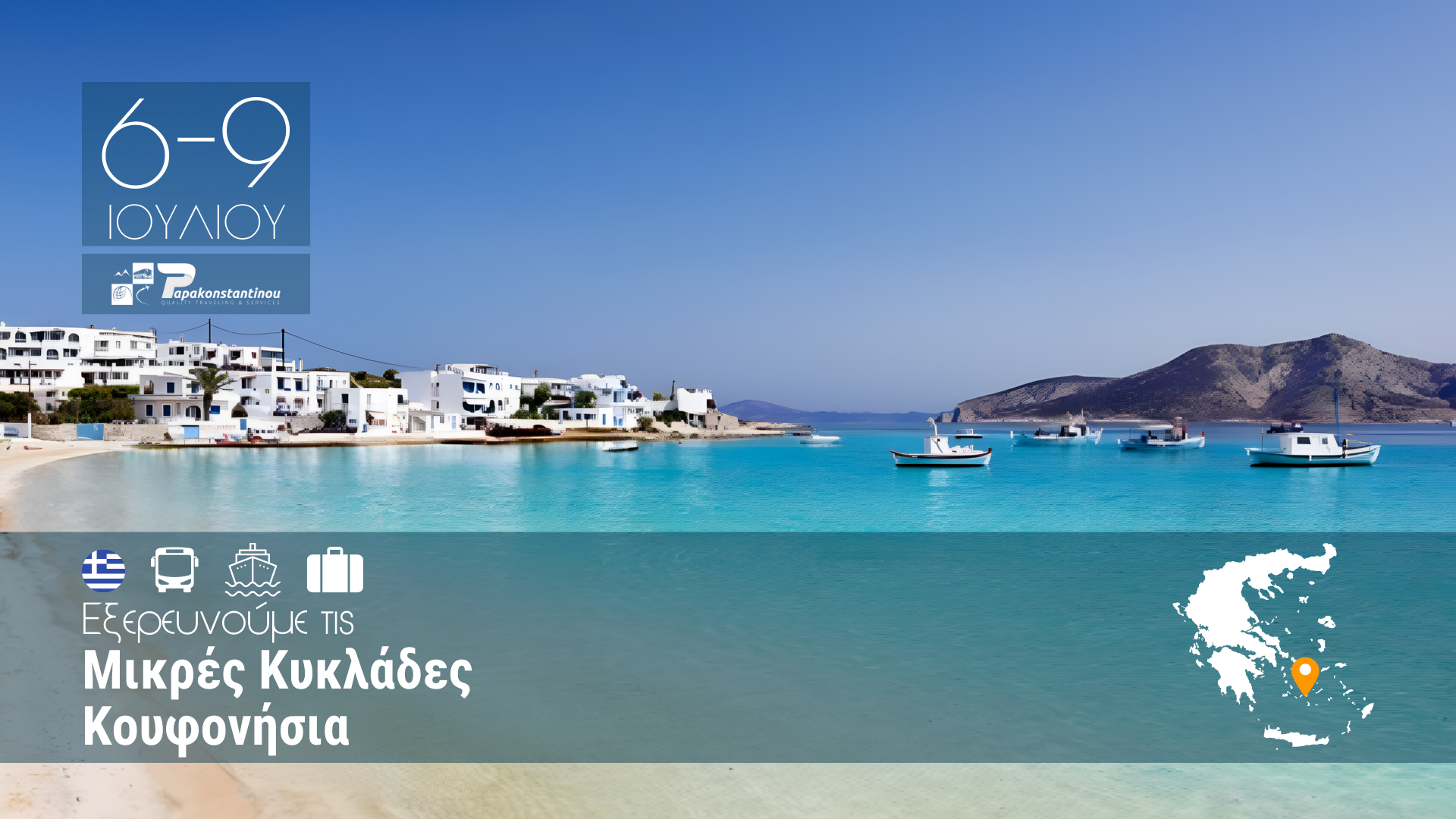 Όλα ξεκινούν ένα πρωινό στην Πάτρα. Μπαινουμε στο πούλμαν με καλή διάθεση, βαλίτσες γεμάτες καλοκαιρινά και καρδιές έτοιμες για νησιώτικες συγκινήσεις. Ο προορισμός μας; Ένας μικρός παράδεισος στις Κυκλάδες – το Κουφονήσι.