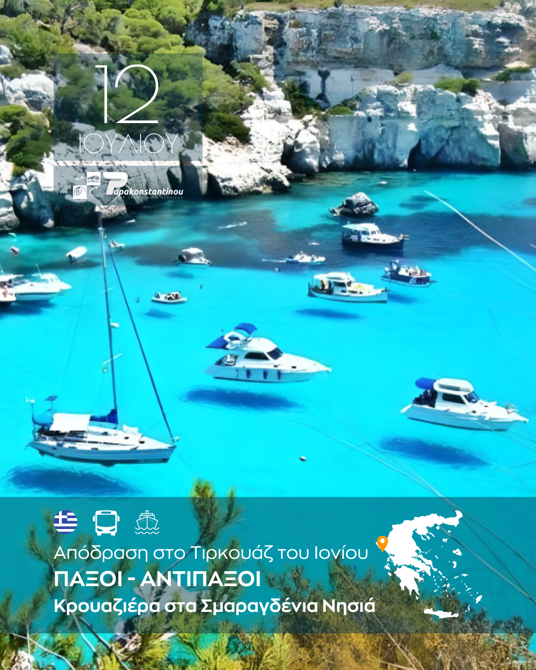 Μονοήμερη μαγευτική απόδραση σε Παξούς Αντίπαξους